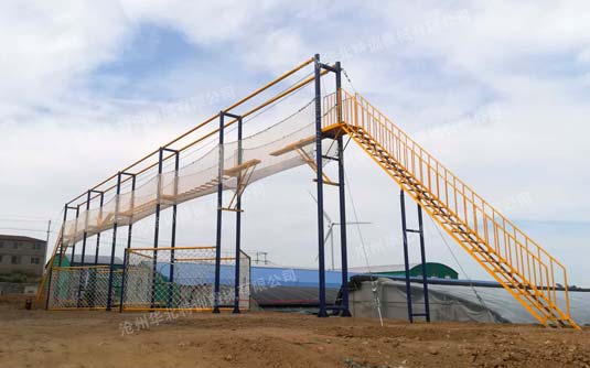規(guī)格:占地42米長(zhǎng)×6米寬,主體長(zhǎng)41.5米×寬6米×高8米。 包含項(xiàng)目:獨(dú)木橋、翹板橋、橫渡天梯、吊索橋、斷橋、攜手并進(jìn)、相互依存、禮讓通行、網(wǎng)墻(2…